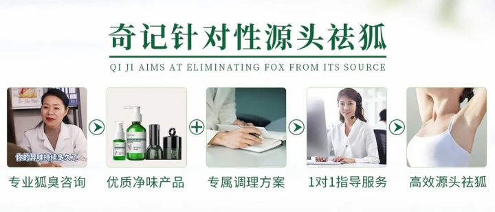 只有做到一人一方,分类分制,从源头改善好腋下异味问题,才能省心省力又省钱。如果你现在还在忍受腋下异味困扰,苦寻无果,不妨找小奇免费咨询,跟我说说你的具体情况,免费帮你定制适合你的祛狐方案~